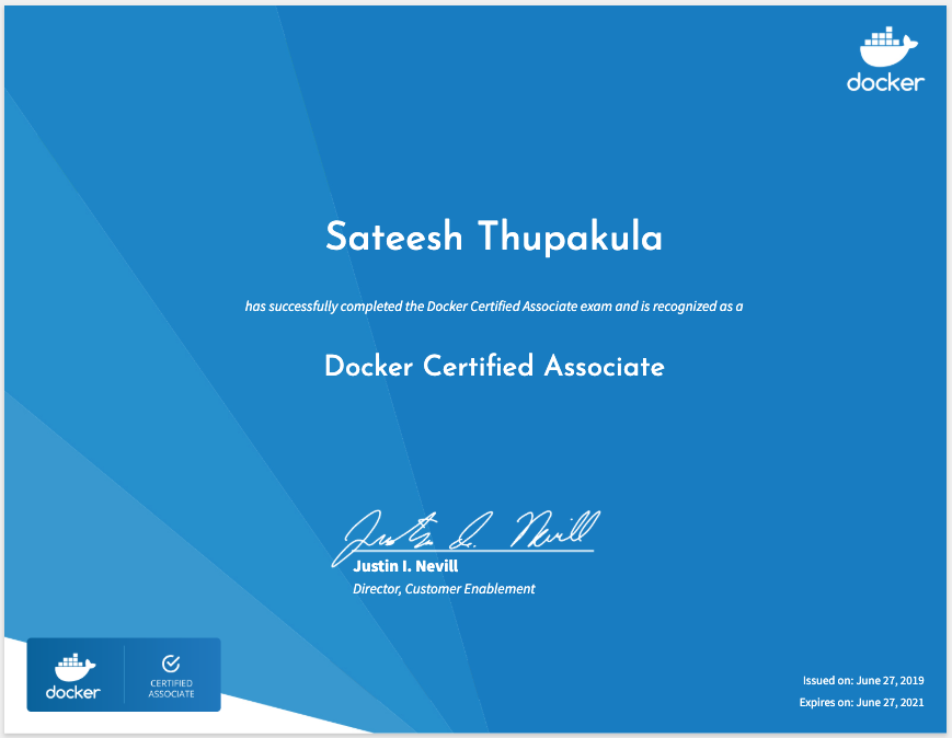 Here is my successful journey/path/story to achieve “Docker Certified Associate”. I’m neither core Linux Administrator nor a developer to start my Docker journey. Windows dockers are not fully baked (my perception) and don’t worry about pre-requisites for the course. I started with basic courses followed by Deep-Dive sessions from Pluralsight.com hosted by Nigel Poulton. I recommend you to buy the soft/hard copy of “Docker Deep Dive” from Amazon to prepare for the exam without a laptop (I prefer paper copy) and reduce screen time. Leave a comment with your e-mail ID for tips to buy the book. There are three stages in this journey starts with basics, deep-dive and finally attempt the exam. Please find the Benefits & Exam details section from Docker official site. You can find the similar courses from Udemy & Linux academy from other authors which can be used to prepare in the same path.